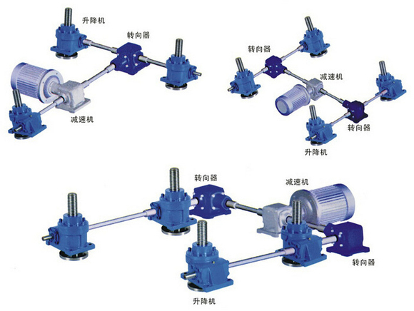 蝸輪絲桿升降機聯(lián)動平臺無論幾臺組合聯(lián)動,使用配件數(shù)量不同但都是采用一臺電機驅(qū)動,這樣才能保證整個平臺的同步性(由于電機轉(zhuǎn)速有誤差,多臺電機驅(qū)動無法保證同步穩(wěn)定性)。選用電機時需考慮各傳動部件的效率,預(yù)留足夠的安全預(yù)留,確保驅(qū)動源的扭矩足以驅(qū)動各部件平穩(wěn)工作。