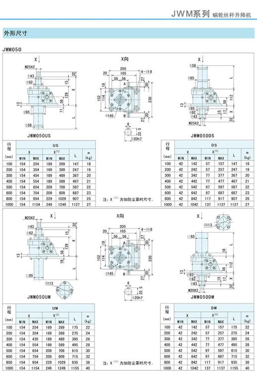 減速機(jī)|蝸輪絲桿升降機(jī)-JWM升降機(jī)050外形尺寸圖-海洋傳動(dòng)
