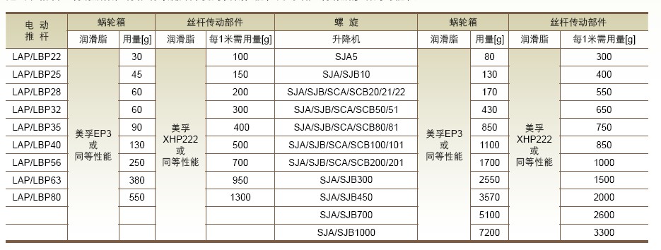 超出表格填入潤滑脂數(shù)值將影響螺旋升降機的機械性能,同時增加潤滑脂滲漏的可能性